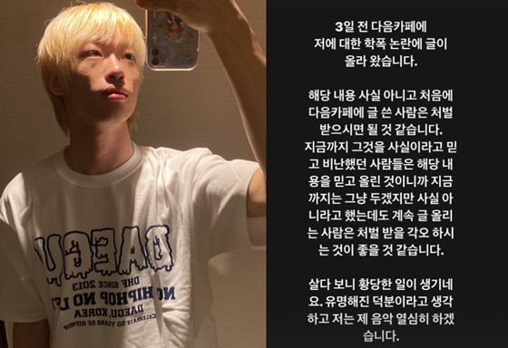 이어 "지금까지 그것을 사실이라고 믿고 비난했던 사람들은 해당 내용을 믿고 (글을) 올린 것이니까 지금까지는 그냥 두겠지만 사실이 아니라고 했는데도 계속 글 올리는 사람은 처벌받을 각오하시는 것이 좋을 거 같다"고 전했다.
