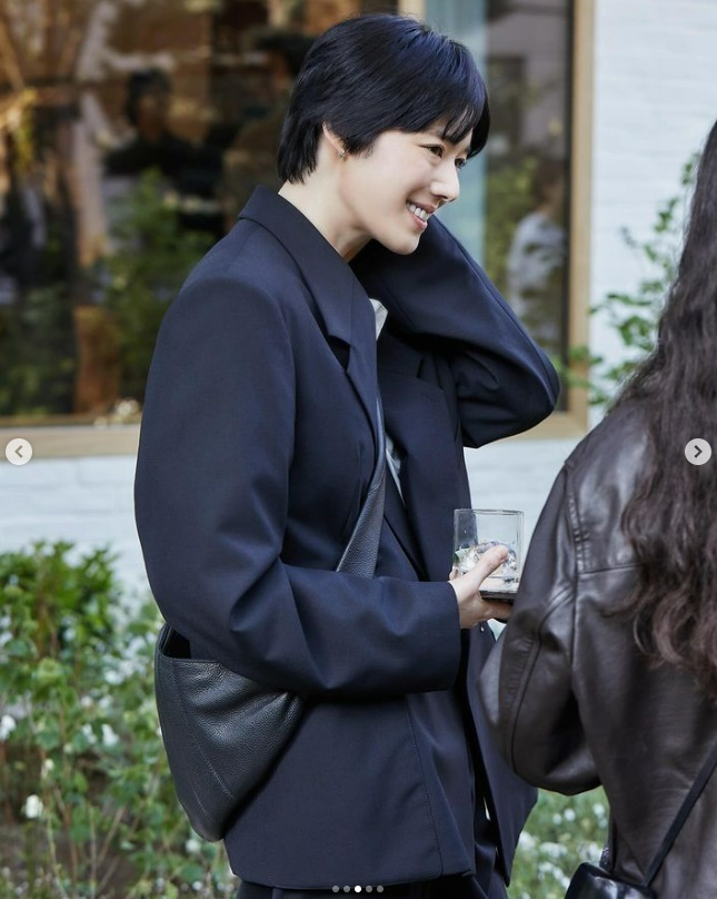 정은채는 먼저 숏컷으로 머리를 자른 변신 근황으로 눈길을 끌었다. 그는 올블랙의 캐주얼 정장 차림으로 행사장에 참석, 여러 인사들과 대화를 나누며 여유롭게 웃음짓는 모습도 보였다.