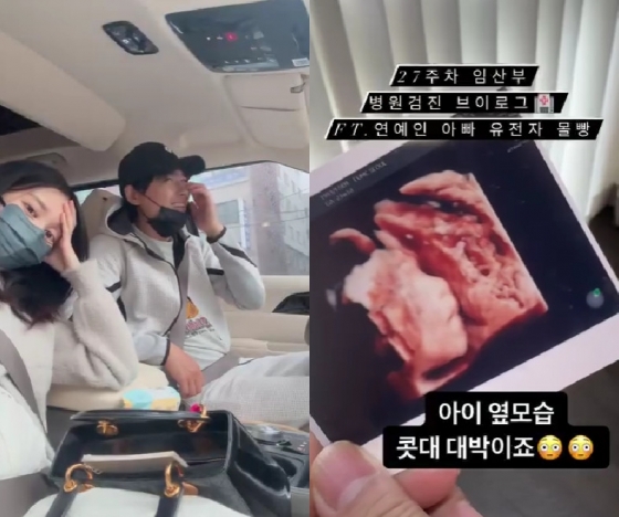 가수 겸 뮤지컬 배우 이지훈의 아내 아야네가 27주 된 아기의 콧대에 감탄했다.
