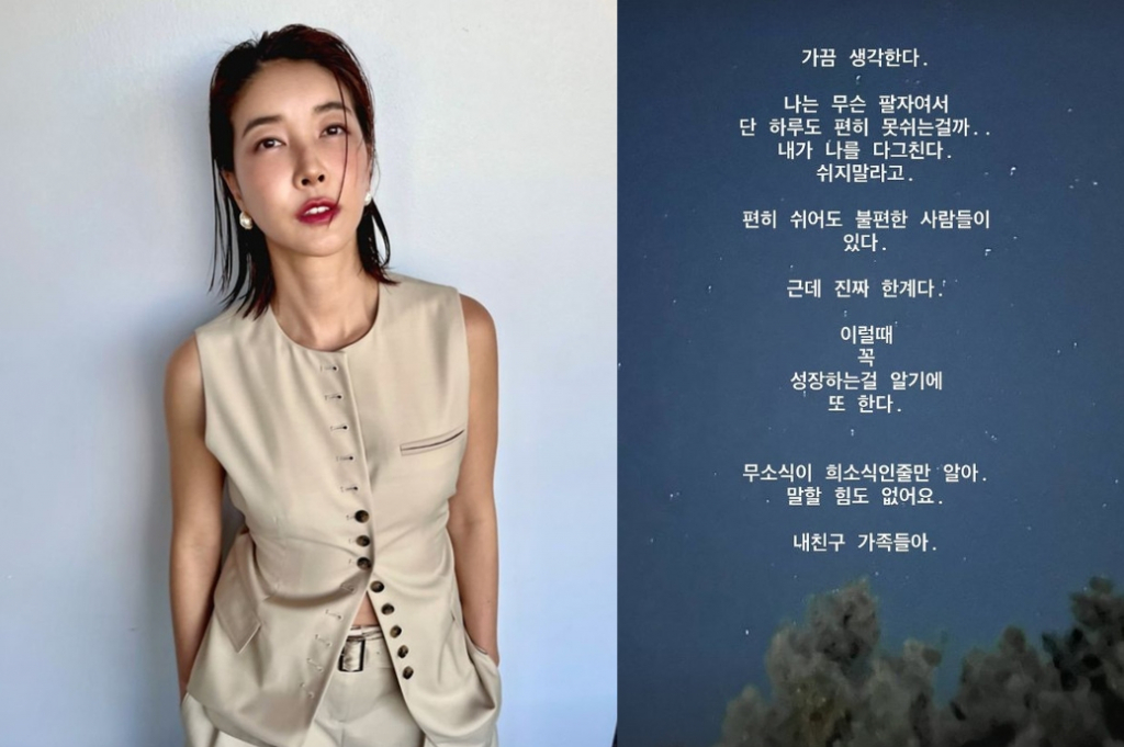 진서연은 16일 자신의 인스타그램에 "가끔 생각한다. 나는 무슨 팔자여서 단 하루도 편히 못 쉬는 걸까. 내가 나를 다그친다. 쉬지 말라고. 편히 쉬어도 불편한 사람들이 있다. 근데 진짜 한계다"라고 토로했다.