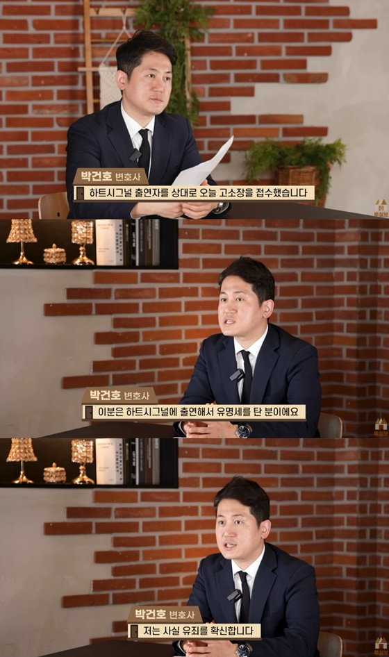 박건호 변호사는 "이분은 '하트시그널'에 출연해서 유명세를 탄 분이다. 나는 유죄를 확실한다. 하지만, 아직 진행 중인 사건이기 떄문에 이분을 특정할 수 있는 말은 하지 않겠다"고 말했다.