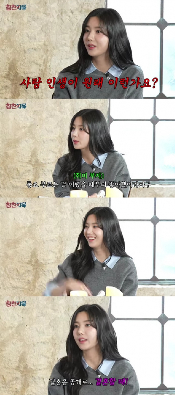 또한 박미선은 "사랑해봤냐"고 물었고, 권은비는 "사랑은 해봤다. 공개 연애를 하고 싶진 않고, 결혼할 때 공개하고 싶다"고 답했다.