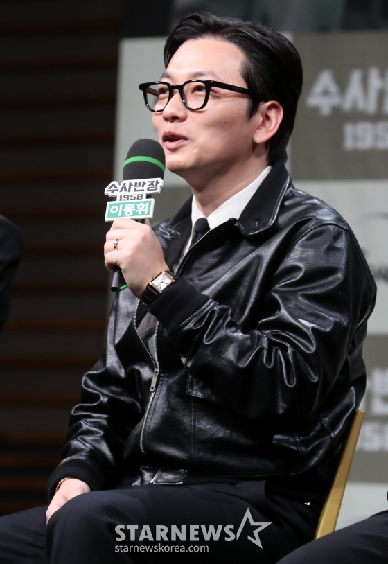 배우 이동휘가 18일 오후 서울 상암 MBC에서 열린 MBC 새 금토드라마 '수사반장 1958' 제작발표회에 참석해 취재진의 질문에 답하고 있다.