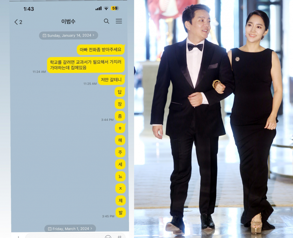 이어 이윤진은 지난 1월 딸이 이범수에게 보낸 카카오톡 대화 내용을 캡처해 올렸다. 딸은 이범수에게 '아빠 전화 좀 받아주세요. 학교에 가려면 교과서가 필요해서 가지러 가야 하는데 집에 있음. 저만 갈 테니 답장 좀 해주세요 제발'이라고 남겼지만, 이범수는 해당 내용을 읽었음에도 답장하지 않았다.