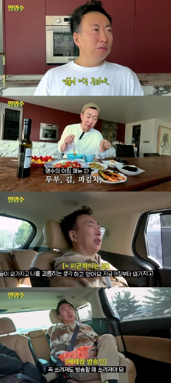 방송인 박명수가 촬영 전 하루 루틴을 공개했다.