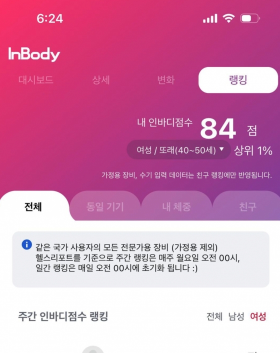 앞서 신봉선은 15일 인바디 측정 결과를 통해 체지방률 19.4%를 찍었음을 공개했으며 자신의 인바디 측정 결과에서 인바디 점수 84점을 받았으며 또래 상위 1%를 찍으며 눈길을 끌었다.