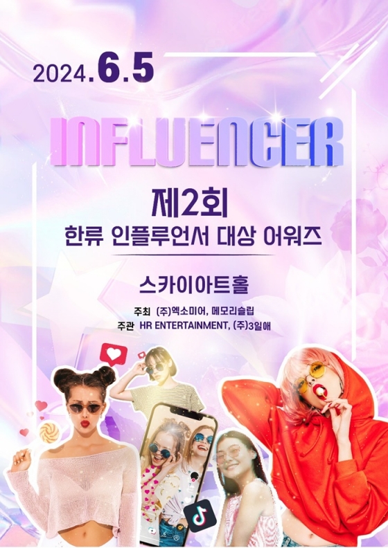 23일 주최 측은 "2024년 상반기 동안 유튜브, SNS에서 활발한 활동을 펼친 연예인, 크리에이터, 인플루언서 등을 선별하여 분야별로 시상하는 2024 한류인플루언서대상 어워즈가 6월 5일 강서구 스카이아트홀에서 열릴 예정이다"라고 밝혔다.