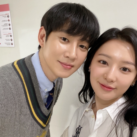 공개된 사진 속에는 김지원과 박성훈의 다정한 투샷이 담겨있다. 박성훈은 '눈물의 여왕' 속에서 보여준 모습과는 정반대의 스윗한 미소를 보이고 있다.