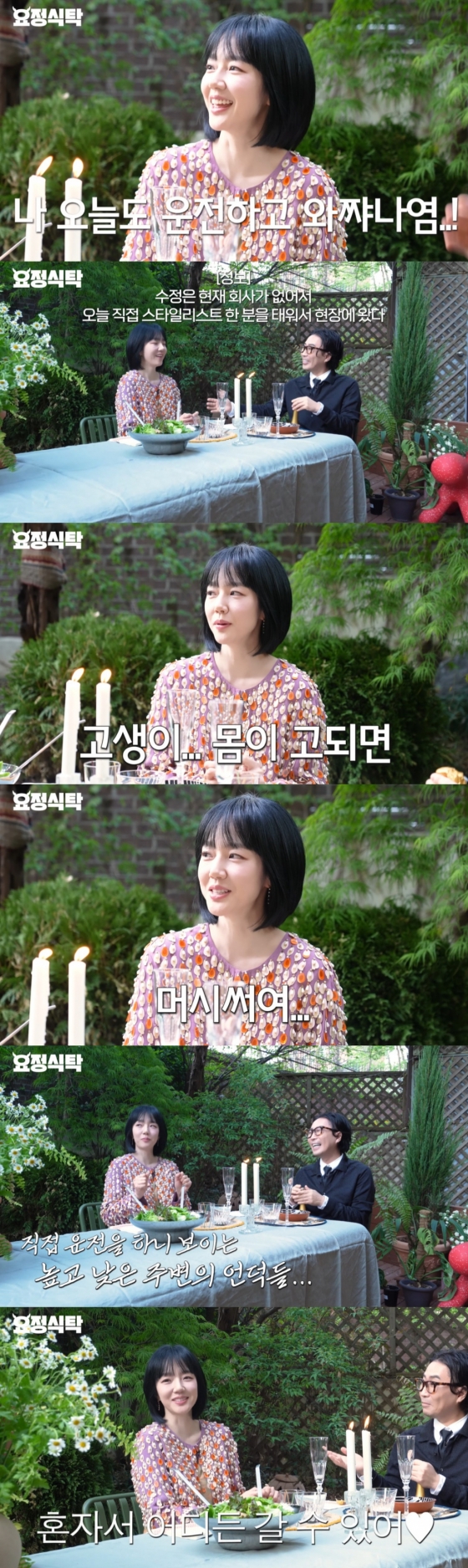 정재형은 "오늘도 직접 운전하고 왔다. 스타일리스트 동생과 같이 왔다"는 임수정의 말에 "너무 멋있다. 프랑스 여배우 같다"라고 극찬했다. 그러자 임수정은 "원래 몸이 고되면 멋있다. 혼자서 어디든 갈 수 있다"라고 너스레를 떨었다.