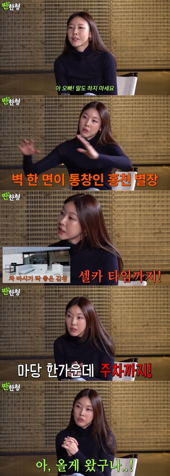 한혜진의 이같은 고통 호소는 이번이 처음이 아니다. 그는 지난 1월 유튜브 채널 '짠한형 신동엽'에 출연해 자신의 홍천 별장 마당에서 차를 마시던 중년 부부의 일화를 고백했다.
