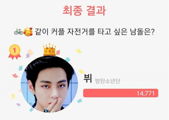 방탄소년단(BTS) 뷔가 '같이 커플 자전거를 타고 싶은 남자 아이돌' 1위에 올랐다.