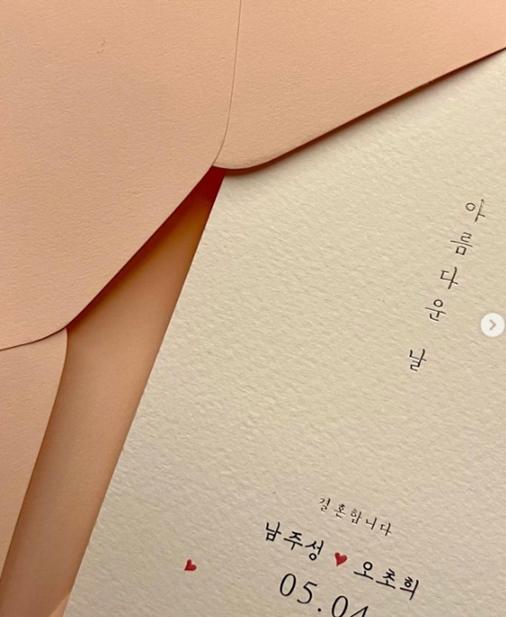 3일 오초희는 "D-1 정신 차려 보니 내일. 잘 살겠습니다"라며 청첩장을 찍어 올렸다.