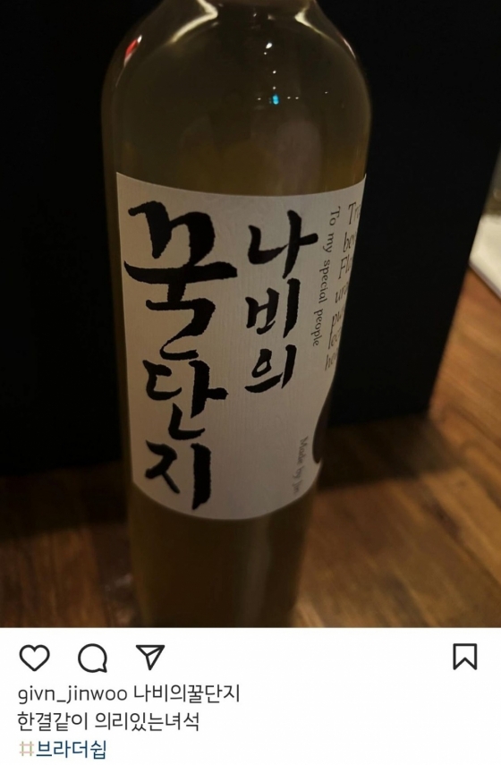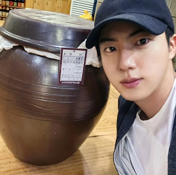 방탄소년단의 전 컨디셔닝 트레이너 김진우는 최근 자신의 인스타그램을 통해 진이 직접 만든 전통주 '나비의 꿀단지' 선물 사진을 인증하며 '한결같이 의리있는 녀석'이라는 문구로 진에 대한 고마움을 나타냈다.