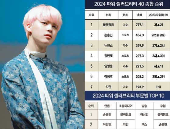 방탄소년단(BTS) 지민이 '2024 파워 셀러브리티 40' 선정 결과 K팝 솔로 아티스트 최고 순위에 올랐다.