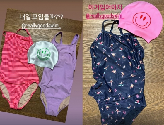 신봉선은 "내일 뭐 입을까?", "이거 입어야지"하며 들뜬 마음으로 수영복을 고르는 근황도 전했다.