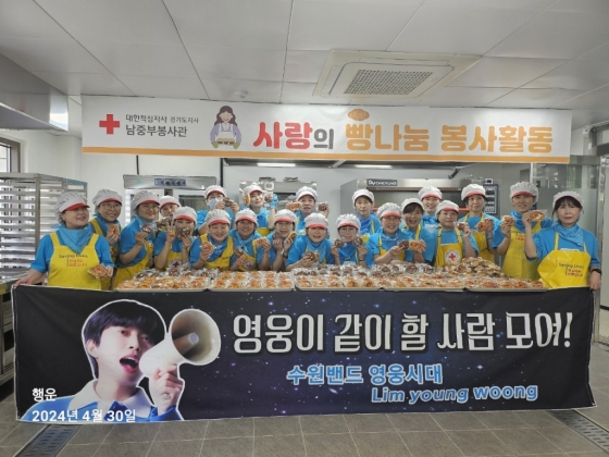 대한적십자사 경기도지사에 따르면 임영웅 팬클럽 수원밴드 영웅시대는 어린이날을 맞아 5월 7일 경기적십자 빵나눔터에서 릴레이 사랑의 빵나눔 봉사활동을 진행했다.