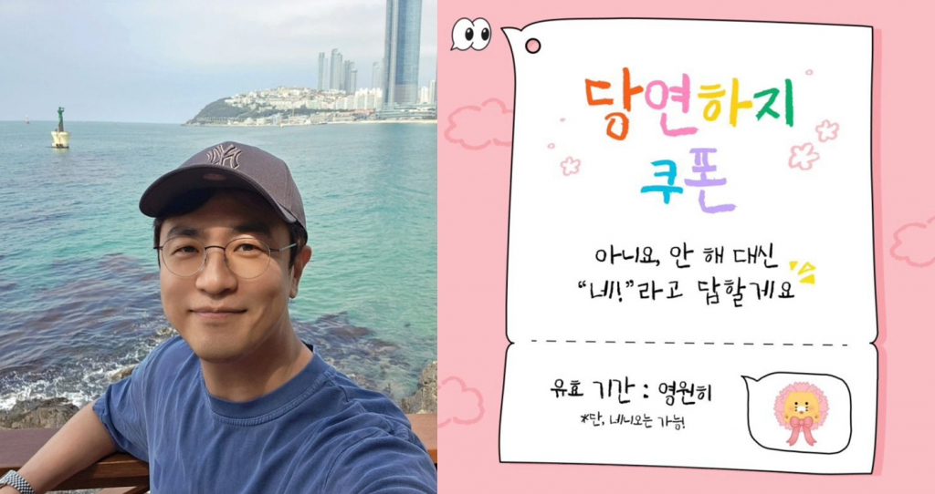 공개된 사진 속엔 "당연하지 쿠폰. 아니요, 안 해 대신 '네!'라고 답할게요. 유효 기간 : 영원히 *단 네니오 가능!"이란 문구가 담겨 있다. 그의 딸이 어버이날을 기념해 최동석에게 건넨 선물로 보인다.