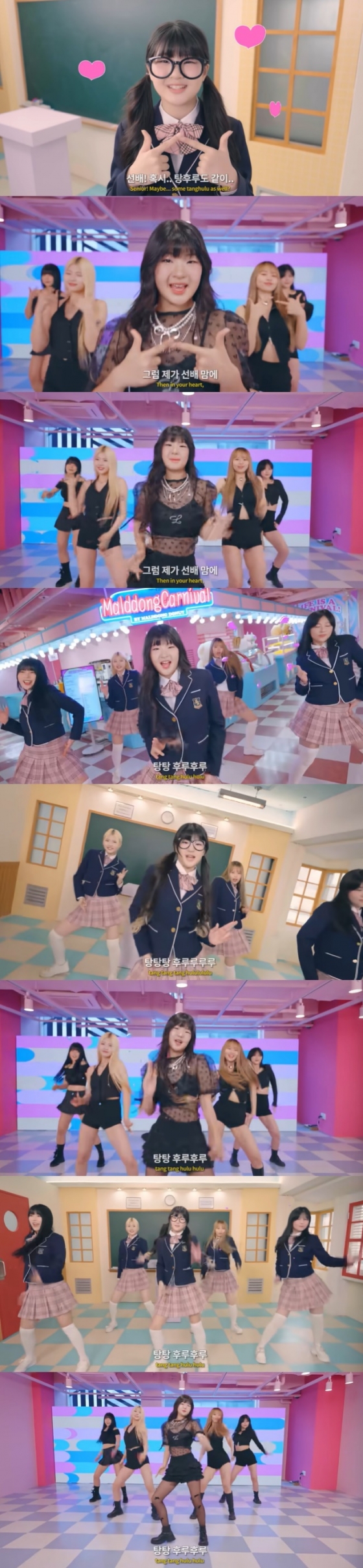 '마라탕후루'는 한 소녀가 좋아하는 선배에게 마라탕과 탕후루를 사달라며 다가가는 내용의 곡이다. '탕탕 후루후루 마라 탕탕 후루루루루'라는 중독성 있는 가사와 후렴구가 특징이며 누구나 쉽게 따라 할 수 있는 춤동작이 돋보인다. 그룹 사우스클럽의 멤버 남동현이 함께 작업했다.