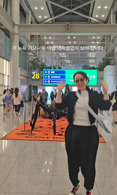 윤영미는 10일 "저 뉴욕가요. 13년 유학 뒷바라지를 마치고 드디어 대학졸업식을 보러 가요"라며 글을 올렸다.