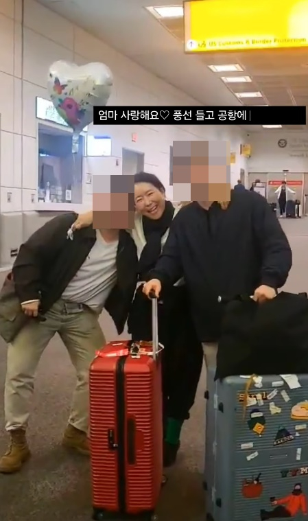 윤영미는 "뉴와크 공항에 '엄마 사랑해요' 풍선 들고 마중나온 아들들"이라며 두 아들과 공항에서 만난 모습을 공개했다.