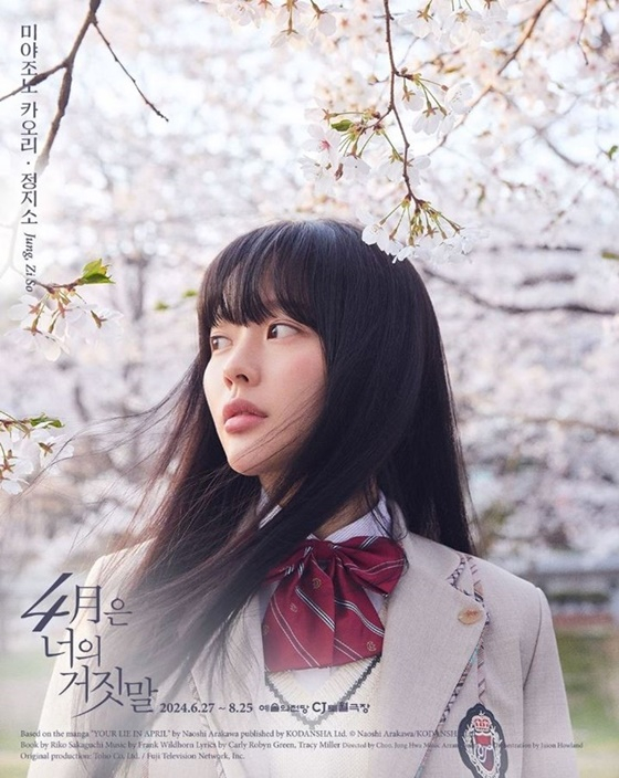 최근 EMK뮤지컬컴퍼니는 공식 SNS 채널을 통해 뮤지컬 '4월은 너의 거짓말' 캐릭터 포스터를 오픈, 미야조노 카오리 역에 캐스팅된 정지소의 비주얼로 팬들의 이목을 사로잡았다.