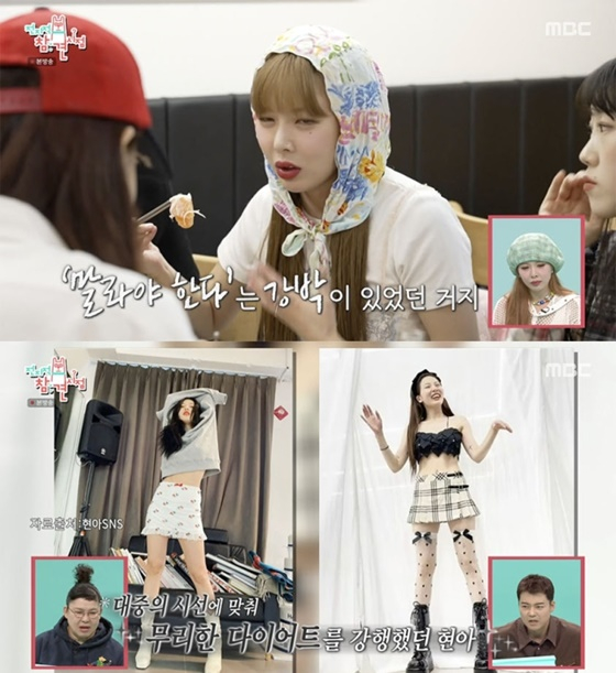 특히 현아는 "스케줄 다닐 때 김밥 한 알 먹고 다녔다"라고 떠올려 놀라움을 자아냈다. 무리한 다이어트로 인해 결국 한 달에 열두 번씩 쓰러진 지경에 이르렀다고. 현아는 "무대를 잘하고 싶어서, 예쁜 몸을 갖고 싶었는데 무대 위에서 쓰러졌다. 대학병원에서 살찌우면 안 쓰러진다고 해서 지금은 몸무게 8kg을 찌운 상태다. 전보다 훨씬 건강해졌고 편해졌다"라고 마음의 여유를 보였다.