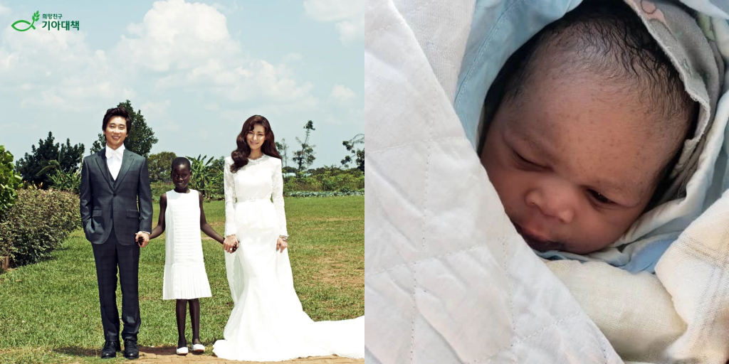 공개된 사진 속에는 김정화, 유은성 부부와 2009년 우간다 봉사활동을 통해 인연을 맺은 아그네스의 모습이 담겼다. 아그네스는 현지에서 결혼해 최근 출산한 것으로 보인다.
