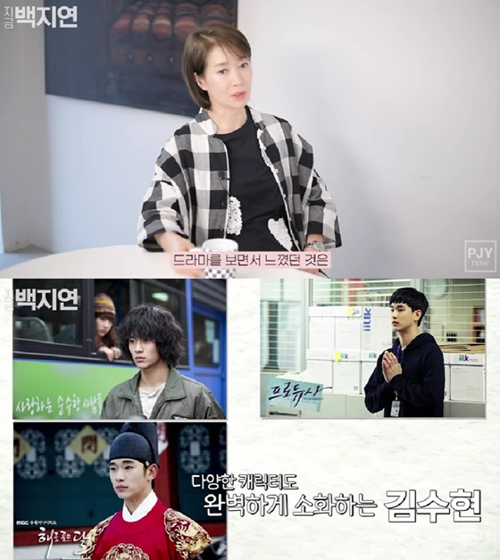이어 "'별에서 온 그대'에서 김수현은 어린 느낌이었고 약간 긴장돼 있었던 거 같다. 그래서 말이 거의 안 했다. 되게 점잖고 말이 없는 캐릭터구나 했다. '프로듀사'에서는 또 굉장히 캐릭터가 달랐다"라며 "세 번째 만났는데 다른 김수현이 왔더라. 너무 밝아지고 말도 재밌게 하고 현장 분위기를 리드했다"고 밝혔다.