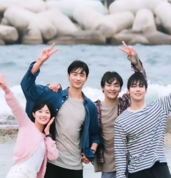 주연 배우 김혜윤, 변우석, 송건희, 이승협이 한 자리에 모여 찍은 단체 사진도 공개했다.