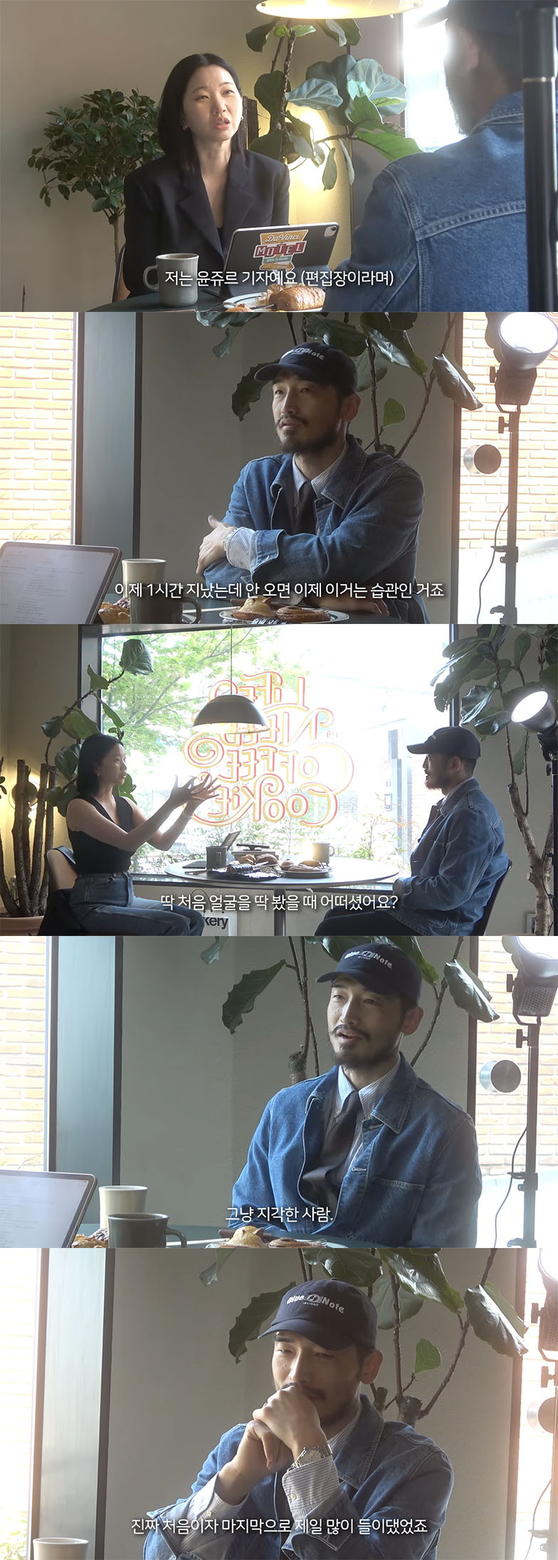 "처음 봤을 때 어땠냐?"라는 장윤주의 질문에는 "별생각 없었다. 그냥 지각한 사람"라며 "지각하는 걸 너무나 싫어한다. 그런데 촬영이 딱 시작되니까 눈빛이 바뀌는데 그게 너무 멋있었다"라고 털어놨다.