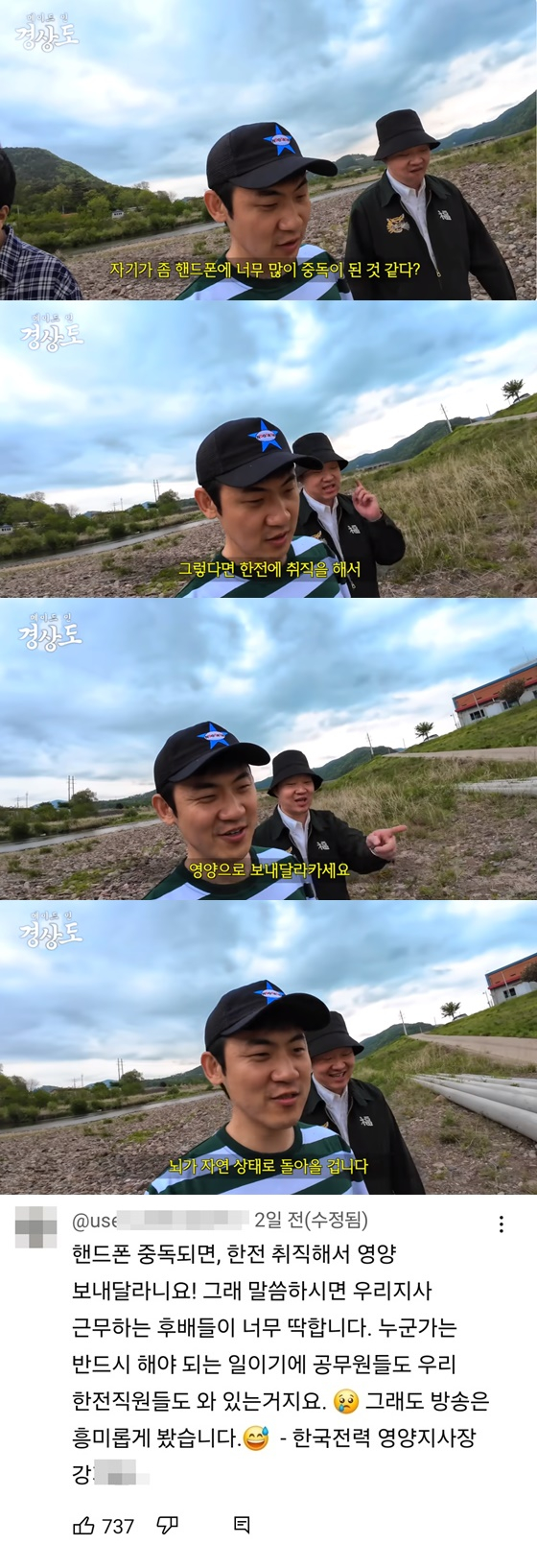 이에 네티즌들의 비판이 쏟아진 가운데, 실제 한국전력공사 영양지사장까지 등판했다. 영양지사장은 문제의 영상에 "휴대전화 중독되면 한전 취직해서 영양 보내달라니요! 그래 말씀하시면 우리 지사 근무하는 후배들이 너무 딱합니다. 누군가는 반드시 해야 되는 일이기에 공무원들도 우리 한전 직원들도 와 있는 것"이라고 지적하면서도 "그래도 방송은 흥미롭게 봤습니다"라고 매너를 지켰다.
