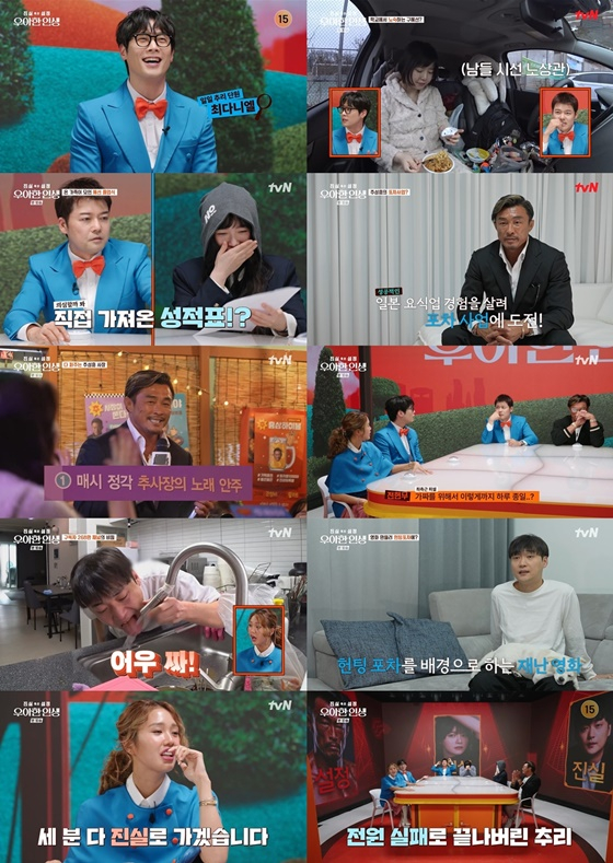 16일 오후 방송된 tvN '진실 혹은 설정: 우아한 인생'에서는 시험 기간을 맞은 대학생 구혜선을 시작으로 포장마차 사장 추성훈, 크리에이터 진용진의 흥미로운 일상이 펼쳐졌다. 특히 진실과 설정을 구분하기 어려운 이들의 영상에 추리단 모두 오답을 기록하는 초유의 사태가 발생해 재미를 배가시켰다.
