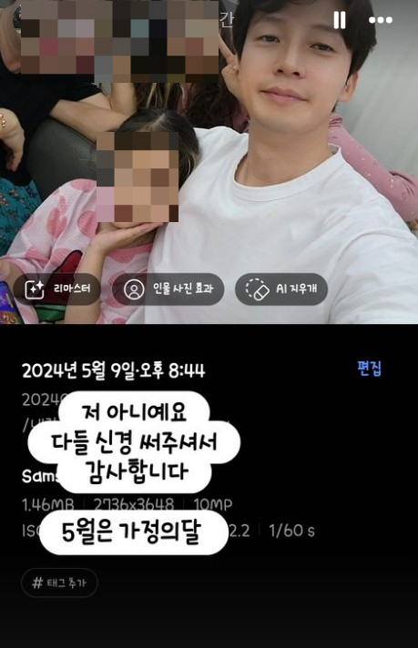허경환은 19일 자신의 SNS 계정에 한 장의 사진을 올렸다. 사진은 가족과 함께 찍은 것으로 보인다. 허경환은 사진과 함께 "저 아니예요. 다들 신경 써주셔서 감사합니다. 5월은 가정의 달"이라고 적었다.