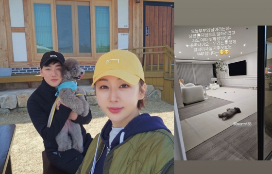 이어 "우리는 이렇게 열심히 사는 자주 못 보는 부부"라고 덧붙였다. 공개된 사진 속에는 집의 넓은 거실에 편하게 누워 있는 한영, 박군 부부의 반려견 모습이 담겨있어 눈길을 끈다.