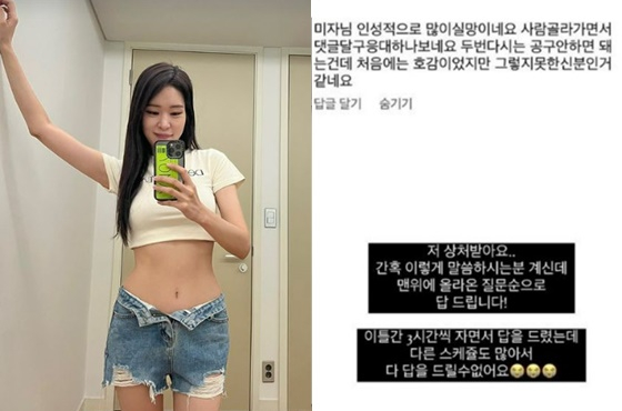 이에 미자는 "저 상처받아요"라고 솔직한 심경을 밝혔다. 이내 그는 "간혹 이렇게 말씀하시는 분이 계신데 맨 위에 올라온 질문 순으로 답을 드린다. 이틀간 3시간씩 자면서 답을 드렸는데, 다른 스케줄도 많아서 다 답을 드릴 수 없다"라고 정중하게 해명했다.