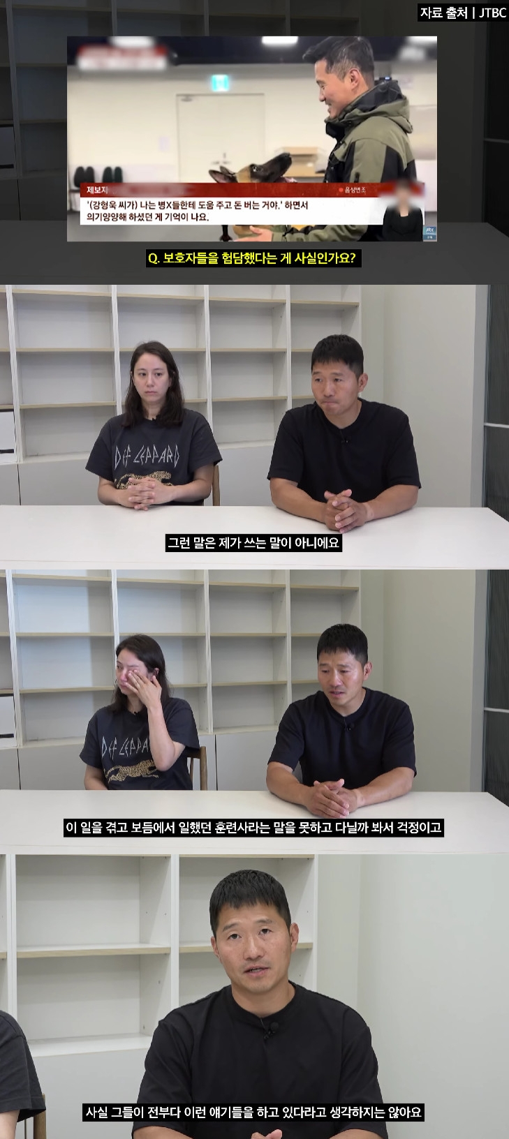이에 PD는 "현재 허위 사실을 말하고 있는 분들은 진짜 훈련사가 아닐 것이다?"라고 묻자, 강형욱 아내는 "맞다"라고 단언했다.