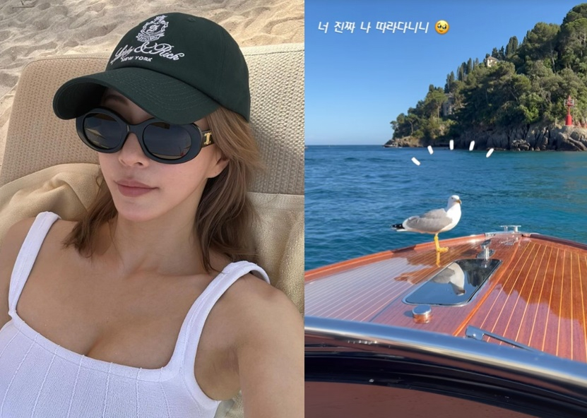 배우 한예슬이 신혼여행 근황과 함께 유쾌한 사진을 공개했다.