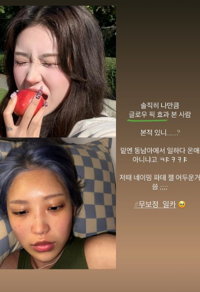 최준희는 사진에 대해 "동남아에서 일하다 온 애 아니냐고 ㅋㅋㅋㅋ #무보정 일카"라고 답하기도 했다.