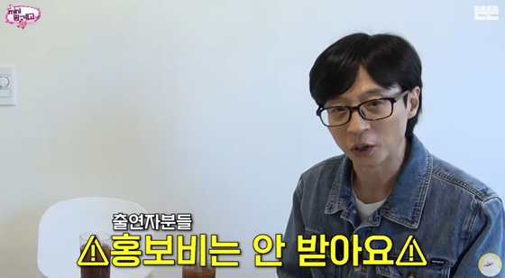 이는 일부 유튜브 채널에서 홍보비 명목으로 게스트들에게 천만 원대, 많게는 '억' 소리 나는 금액을 받는 것으로 알려지며 유재석이 혹시 모를 오해를 사전에 차단한 것이다.