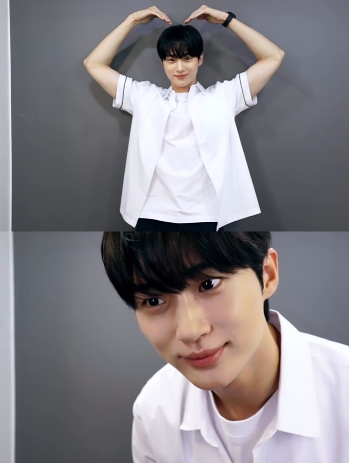 변우석은 최근 자신의 인기를 급상승시킨 tvN 드라마 '선재 업고 튀어' 속 교복 입은 선재의 모습을 그대로 한 채 나타나 하트, 브이, 장난기 있는 포즈 등을 취했다.