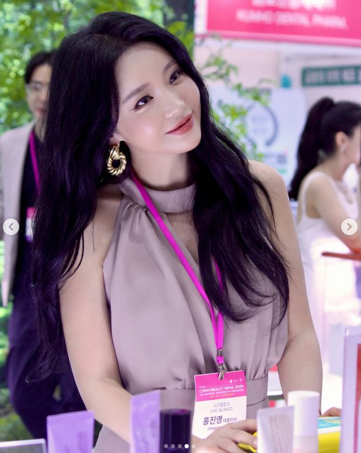 홍진영은 1일 한 뷰티박람회에 참석한 자신의 모습이 담긴 사진들을 공개했다.