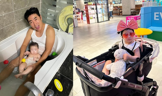 사진 속 장동민 딸은 귀여운 매력을 발산하고 있다. 커다란 액세서리를 착용한 채 유모차를 타고 있는가 하면, 앞치마를 야무지게 두르고 수박을 먹고 있기도 했다.
