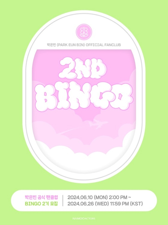 배우 박은빈이 공식 팬클럽 '빙고'(BINGO) 2기를 모집한다.