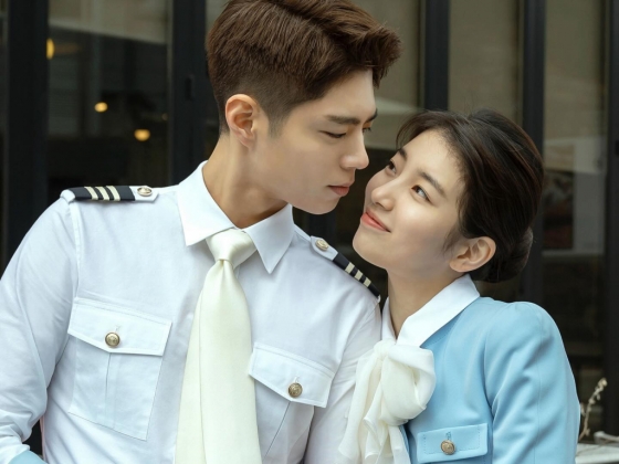 사진 속 박보검, 수지는 영화 '원더랜드' 촬영 중 새빨간 꽃 앞에서 다정한 분위기를 자아내고 있는 모습. 극중 두 사람은 승무원 커플로 분한 만큼 남색 컬러의 유니폼을 완벽 소화하면서 보는 이들에게 눈호강을 선물했다.