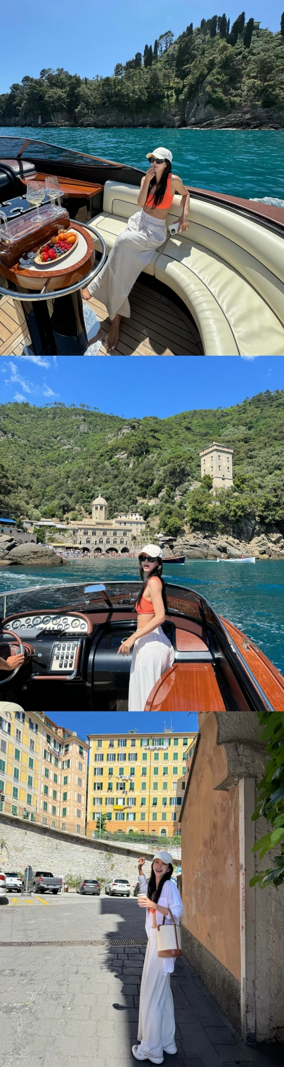 공개된 사진 속에는 신혼여행 중 럭셔리 배 여행을 즐기고 있는 한예슬의 모습이 담겨있다. 멋진 풍광이 시선을 사로잡는 가운데, 한예슬은 핫한 몸매를 과시했다.