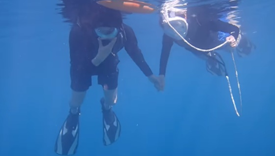 그는 "물속에서도 손잡고 다니는 우리는 수달부부. 스노클링 할 때는 몰랐는데 영상보고 알았다"며 손을 잡고 스노클링을 즐기고 있는 모습을 올렸다.
