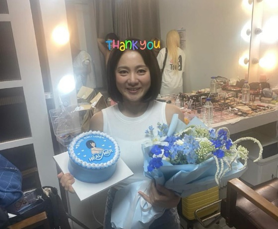 공개된 사진 속 박나래는 광고 업체에서 보내 준 케이크를 들고 환한 미소를 짓고 있다.