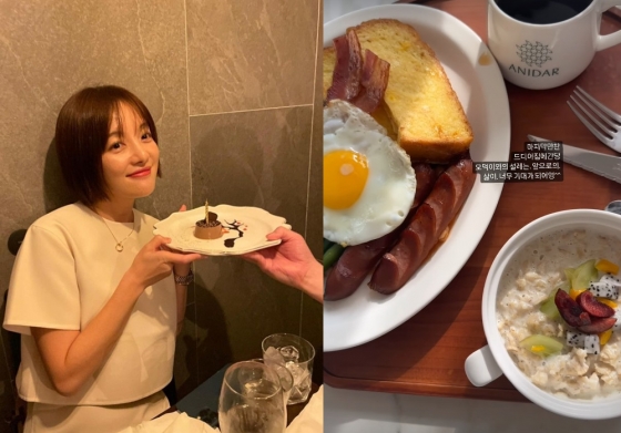 공개된 사진 속엔 조리원에서 마지막 만찬을 즐기는 그의 모습이다. 특히 토스트, 계란 후라이, 커피 등 음식도 이목을 끈다.