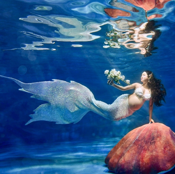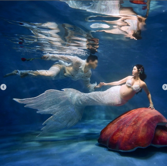 랄랄은 지난 9일 자신의 인스타그램에 "남편이랑 수중 만삭 촬영. 인어공주 컨셉인데 현실은 바다코끼리. 출산 D-40"이란 글을 게재했다.