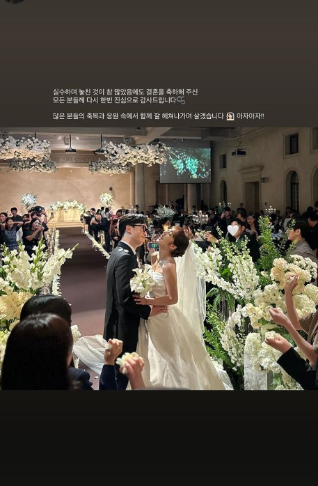 김보라는 지난 9일 자신의 인스타그램 스토리를 통해 "실수하며 놓친 게 참 많았음에도 결혼을 축하해주신 모든 분께 다시 한번 진심으로 감사드립니다. 많은 분이 축복과 응원 속에서 함께 잘 헤쳐 나가며 살겠습니다. 아자아자!"란 글을 게재했다.